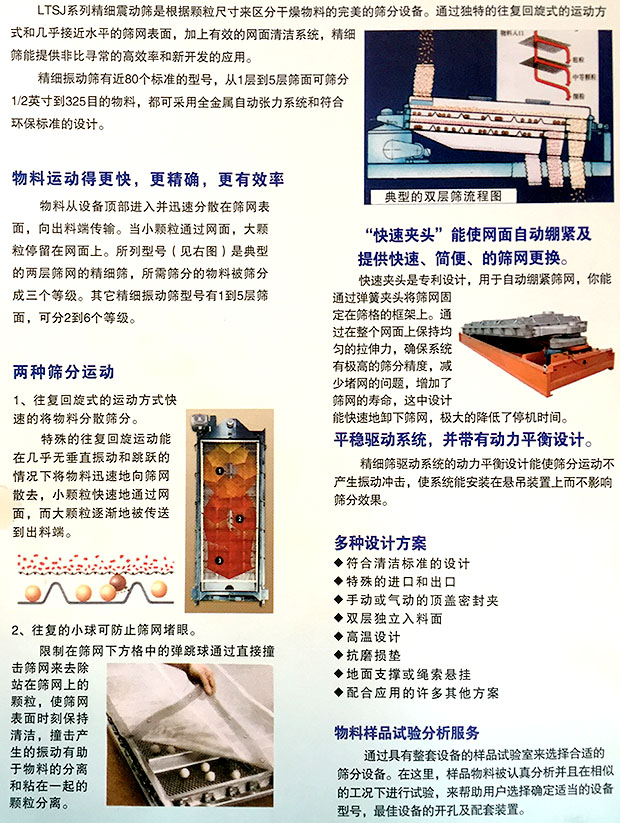 平面回轉(zhuǎn)篩又稱平面回轉(zhuǎn)篩分機、精細篩分機,是一種高標準篩分機,人從眾結(jié)合國外先進技術(shù)和研發(fā)經(jīng)驗,對它進行了改良設(shè)計。平面回轉(zhuǎn)篩是目前**有效的模擬人工篩分運動原理的篩分機,能篩分所有精細與超細范圍的粉末與微粒狀物料,特別適合篩分一些不易篩分的物料,篩分的各項指標都比一般振動篩要好幾倍。