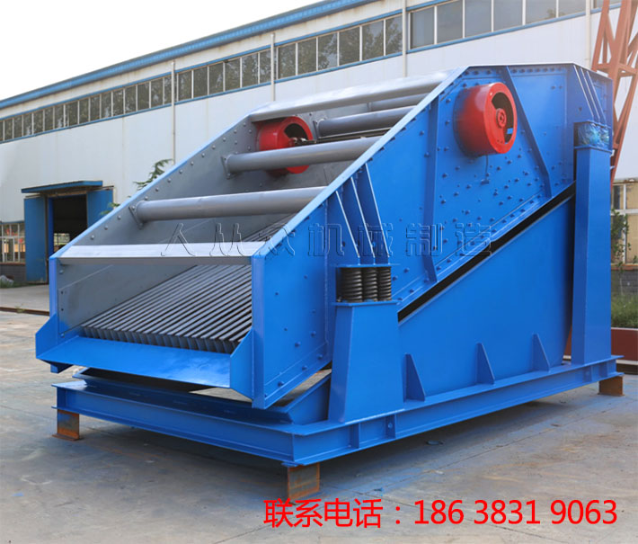 棒條振動篩主要由振動機(jī)架、彈簧、振動器、電機(jī)振動架及電機(jī)等組成。激振器個是由二特定位置的偏心軸以齒輪相嚙合組成,裝配時必須使兩齒輪按標(biāo)記相嚙合,通過電機(jī)驅(qū)動,使兩偏心軸旋轉(zhuǎn),從而產(chǎn)生巨大合成的直線激振力,使機(jī)體在支承彈簧上作強(qiáng)制振動,物料則以此振動為動力,在料槽上作滑動及拋擲運動,當(dāng)物料通過槽體上的篩條時,較小的料可通過篩條間隙而落下,可不經(jīng)過下道的破碎工序,起了篩分的效果,提高了工作效率。