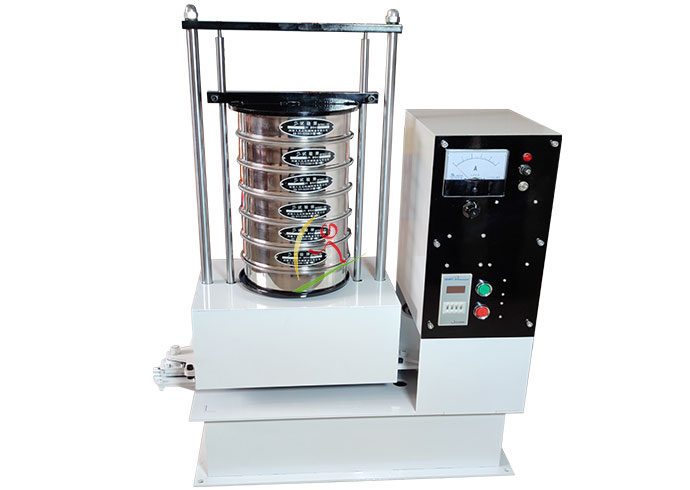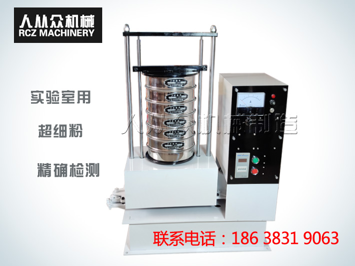 磁懸浮式振動(dòng)篩通電后電磁裝置形成磁場(chǎng),起振裝置懸浮在磁場(chǎng)中間,形成了上下高頻振動(dòng),再通過(guò)底部托盤傳導(dǎo)到安放在托盤上的一套從粗到細(xì)排列的篩具上,使得實(shí)驗(yàn)篩、分樣篩中的物料上下、左右往返振動(dòng)及運(yùn)動(dòng),使每層實(shí)驗(yàn)篩、分樣篩內(nèi)只留下相同粒度的物料,達(dá)到了不同粒度的分離。