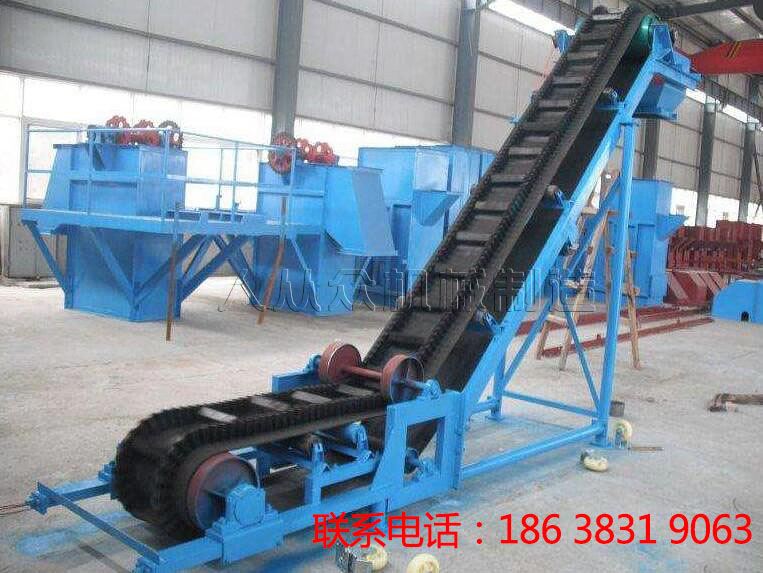 大傾角輸送機是一種新型的帶式輸送機,又叫波狀擋邊大傾角帶式輸送機,它在連續(xù)輸送散狀物料上非常好,采用的是具有波狀擋邊和橫隔板的輸送帶,擋邊帶由基帶、擋邊和隔板組成,基帶外觀同曾通輸送帶。大傾角輸送機特別適用于大傾角狀態(tài)下(可達90°)連續(xù)輸送物料。目前人從眾機械制造生產(chǎn)的大傾角輸送機,輸送物料堆積密度為 0.5~2.5t/m3,工作環(huán)境溫度為-19℃~+40℃范圍內(nèi)。