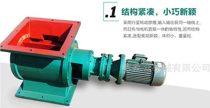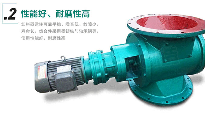 YJD卸料器結(jié)構(gòu)緊湊、造型美觀、使用方便、運轉(zhuǎn)平穩(wěn)、噪音低,由于軸成,齒輪箱離開殼體一段距離,對于高溫,潤滑都有較大改善。YJD卸料器常用在氣力輸出系統(tǒng)中,對于壓力輸出系統(tǒng)或負壓輸出系統(tǒng),YJD卸料器卸料器可以均勻,連續(xù)地向輸料管供料。以保證氣力輸出管內(nèi)的氣、固體比較穩(wěn)定,從而使氣力輸送能正常工作,同時,又能將卸料器的上、下部氣壓隔斷而起到鎖氣作用。YJD卸料機工作時,粉塵靠重力落入,充滿上面和側(cè)面的星形葉片空格。葉片轉(zhuǎn)子由電動機通過減速機轉(zhuǎn)動軸帶動,葉輪轉(zhuǎn)到下部粉塵靠自重卸下。耐溫型所輸送物料的溫度可達280°C兩端軸承與葉輪有一定隔離,能防止超細粉料與軸承接觸。耐高溫型卸料器輸送物料的溫度可達500°C,采用鏈輪連接,減速機和卸料器殼體有一定的距離。 YJD卸料器的特點:
