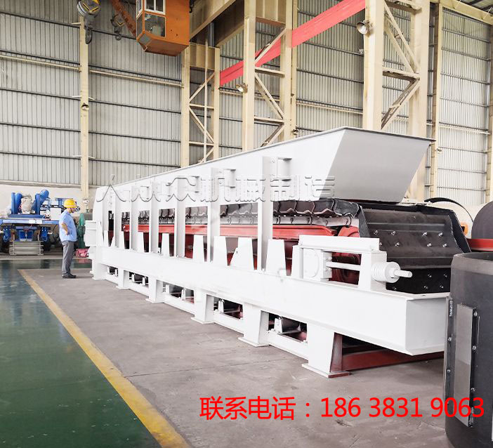 板式給料機(jī)有輕型、中型、重型三種,其至大向上傾角20度。分別適用于沿水平或傾斜的線段由貯料倉(cāng)向破碎機(jī)輸送機(jī)或其它工作機(jī)械與容器連續(xù)均勻地配給和輸送堆積密度分別為:輕型機(jī)為不大于1200kg/m3,塊重不超過140kg,溫度不高于350℃的各種塊狀和粒狀、散狀物料;中型機(jī)為不大于2400 kg/m3,塊重不超過500kg,溫度不高于400℃的各種松散物料;重型板式給料機(jī)規(guī)格有槽寬1000、1250、1500、2000、2500、3150毫米,長(zhǎng)度為420米,多種型號(hào)的設(shè)定可滿足不同環(huán)境下的使用情況。