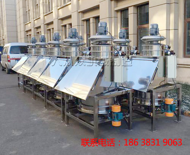 當(dāng)小袋物料需解袋并倒入下一道工序時,只需人工直接拆包后投入到該系統(tǒng),投料時所產(chǎn)生的物料粉塵由集塵風(fēng)機(jī)進(jìn)行收集。物料通過振動篩(安全篩網(wǎng))可將大塊物料和異物攔截,從而保證符合要求的成品(合格物料)進(jìn)入下道工藝。該設(shè)備適用于食品、制藥、化工、冶金行業(yè)中小袋物料的拆包、投放、篩分和卸料,特別適用于粉料人工投料和預(yù)篩分,拆包時由于集塵風(fēng)機(jī)的作用,可以避免物料粉塵到處飛揚。