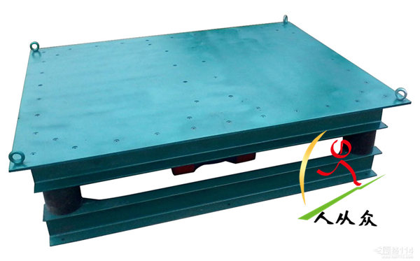 振動平臺主要用于物料的震實,減少物料內(nèi)的空氣和縫隙,可以把顆粒、粉狀物料從散裝變?yōu)閴K狀或其他形狀等形式上的轉(zhuǎn)變。人防門振動平臺主要用于人防門造型時,通過振動電機帶動機體振動使砂充分緊實和充滿鑄型,人防門振動平臺的臺面與機座采用空氣彈簧連接,工作時噪音低,減振效果好。人從眾機械制造有限公司是一家專門生產(chǎn)人防安防防護門振動平臺,可按客戶要求設(shè)計。 人防門振動平臺結(jié)構(gòu):